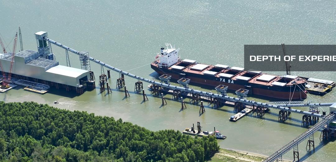 Massman completed the construction of the Nucor Steel Louisiana LLC ship unloading/barge loading dock facility on the Mississippi River near Convent, LA. The facility offloads ocean going ships loaded with iron ore. The iron ore is transferred to a processing plant on land by a conveyor system. After processing the ore, the reduced iron is returned to the dock facility for loading onto barges for shipment to other steel mills which produce steel plate and shapes. The project included the installation of the foundations for the offloading and loading structures, construction of reinforced concrete decks for conveyor transfer and hopper buildings, and installation of guidewalls and mooring dolphins for both ocean going ships and inland barges.